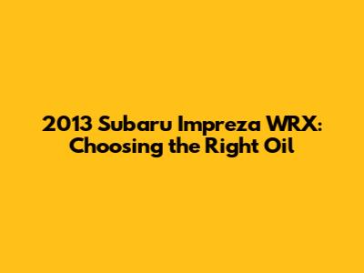Hey car enthusiasts! So, you're cruising around in a 2013 Subaru Impreza WRX, a true icon of the road. These cars are known for their peppy performance and rally-inspired heritage. But to keep your WRX roaring and ready for action, you need to show it some love, and that starts with the right oil. Choosing the correct oil type is crucial for maintaining your engine's health, ensuring optimal performance, and extending its lifespan. We're talking about more than just keeping the engine lubricated; it's about protecting vital components from wear and tear, managing heat, and preventing sludge buildup. Basically, it's like choosing the right fuel for your own body â the wrong stuff can lead to problems down the road. This guide will walk you through everything you need to know about the best oil for your 2013 Subaru Impreza WRX, so you can keep your ride in top condition. We'll dive into the specifics, cover different oil types, and provide tips to help you make the best decision for your car. Let's get started, shall we?