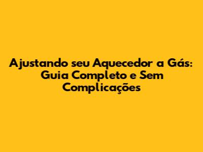 Ajustando Seu Aquecedor A Gás: Guia Completo E Sem Complicações