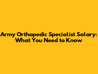 Army Orthopedic Specialist Salary: What You Need To Know