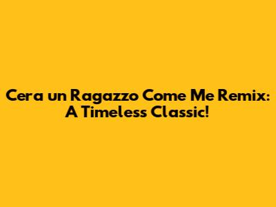 C'era Un Ragazzo Come Me Remix: A Timeless Classic!