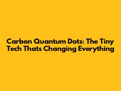 Carbon Quantum Dots: The Tiny Tech That's Changing Everything