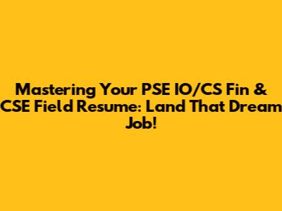 Crafting Your PSE IO/CS Fin & CSE Field Resume