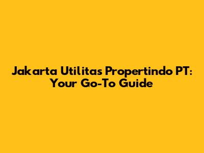 Jakarta Utilitas Propertindo PT: Your Go-To Guide