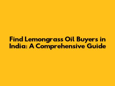 Find Lemongrass Oil Buyers In India: A Comprehensive Guide