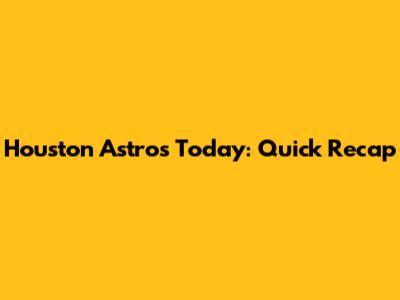 Houston Astros Today: Quick Recap
