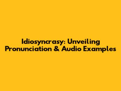 Idiosyncrasy: Pronunciation Guide & Audio Examples