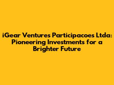 Hey guys! Ever heard of iGear Ventures Participacoes Ltda? If not, buckle up because we're about to dive into the fascinating world of this Brazilian investment powerhouse. iGear Ventures isn't just another name in the financial arena; it's a key player shaping the future of various industries through strategic investments and innovative partnerships. Let's explore what makes iGear Ventures tick, its mission, investment strategies, and the impact it's making on the Brazilian and global markets.