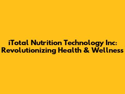 Hey guys! Ever wondered about the future of personalized nutrition? Well, let's dive deep into iTotal Nutrition Technology Inc., a company that's been making waves with its innovative approach to health and wellness. This isn't your grandma's nutrition advice; we're talking cutting-edge tech, personalized plans, and a whole lotta science. So, buckle up as we explore what makes iTotal Nutrition a game-changer in the industry.