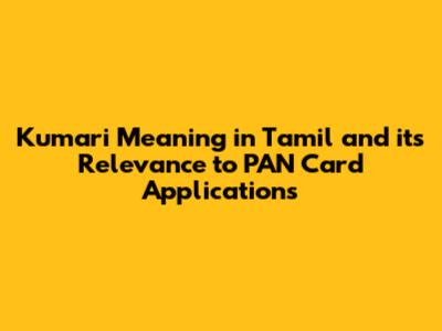 Kumari Meaning, Tamil Context, And PAN Card Applications