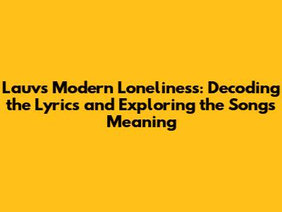 Hey guys! Let's dive deep into Lauv's Modern Loneliness, a track that's not just a catchy tune, but a poignant reflection on the isolation many of us feel in today's hyper-connected world. We're going to dissect the lyrics, explore the themes, and uncover the story behind this incredibly relatable song. So, grab your headphones, and let’s get started!