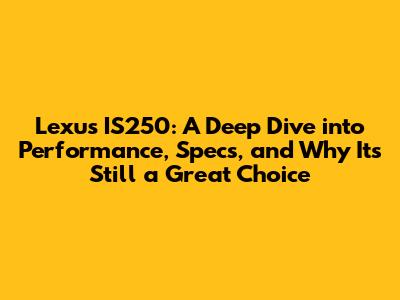 Lexus IS250: Performance, Specs & Why It's Still A Great Choice