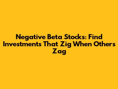 Negative Beta Stocks: Find Investments That Zig When Others Zag