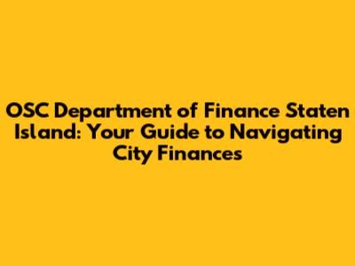Hey guys! Ever find yourself scratching your head, trying to figure out the maze that is city finance, especially when it comes to Staten Island? You're definitely not alone. The OSC Department of Finance on Staten Island is a crucial part of how the city manages its money and provides essential services to us, the residents. Understanding what they do and how they operate can actually make your life a whole lot easier. Whether you're a homeowner paying property taxes, a business owner dealing with permits, or just a curious citizen wanting to know where your tax dollars are going, this guide is for you. We'll break down the key functions of the OSC Department of Finance on Staten Island, giving you the inside scoop on everything from paying your bills to understanding city budgeting. Think of this as your friendly neighborhood guide to all things finance, Staten Island style! We're talking about more than just numbers here; it's about community, services, and how we all contribute to making Staten Island a great place to live. So, let's dive in and get you acquainted with the ins and outs of the OSC Department of Finance. We'll explore their various roles, explain how they impact your daily life, and provide you with helpful tips and resources to navigate their services like a pro. Get ready to become a finance whiz (or at least, someone who doesn't break out in a cold sweat when dealing with city finances!).