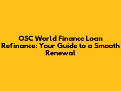 OSC World Finance Loan Refinance: Your Guide To A Smooth Renewal