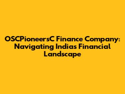 OSCPioneersC Finance Company: Navigating India's Financial Landscape