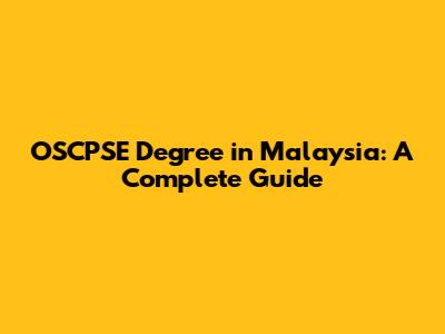 OSCPSE Degree In Malaysia: A Complete Guide