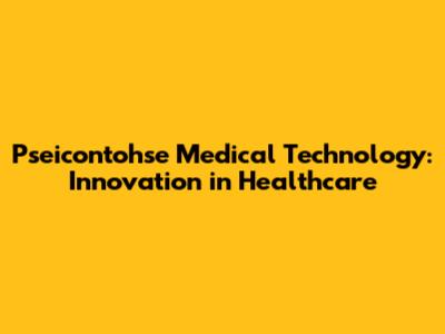 Pseicontohse Medical Technology: Innovation In Healthcare