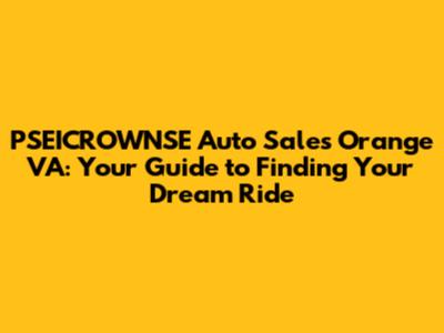 PSEICROWNSE Auto Sales: Your Guide To Orange, VA's Best Deals
