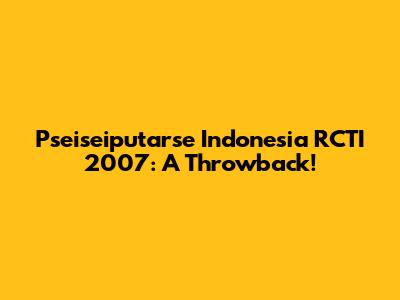 Pseiseiputarse Indonesia RCTI 2007: A Throwback!