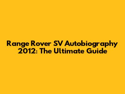 Range Rover SV Autobiography 2012: The Ultimate Guide
