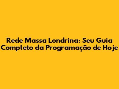 Rede Massa Londrina: O Guia Completo Da Programação De Hoje