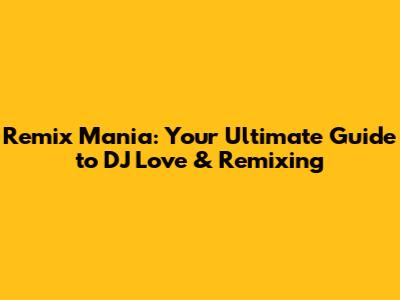 Remix Mania: Your Ultimate Guide To DJ Love & Remixing