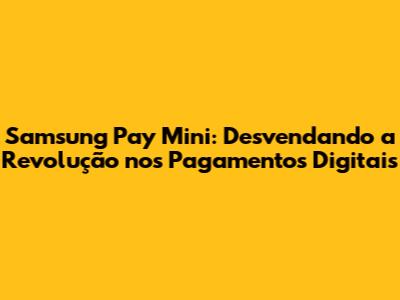 Ah, o mundo digital! Estamos sempre em busca de soluções que facilitem nossas vidas, não é mesmo, galera? E quando o assunto é pagamento, a praticidade é tudo. É aí que entra o Samsung Pay Mini, uma ferramenta que, mesmo sendo "mini", tem um impacto gigante na forma como lidamos com dinheiro. Se você está se perguntando "Para que serve o Samsung Pay Mini?", relaxa, porque este artigo é para você. Vamos mergulhar fundo e descobrir tudo sobre essa maravilha tecnológica!