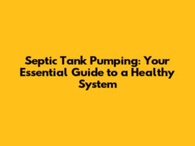 Septic Tank Pumping: Your Essential Guide