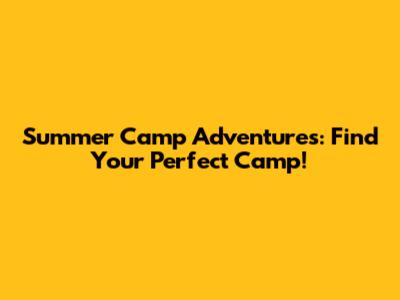 Summer Camp Adventures: Find Your Perfect Camp!