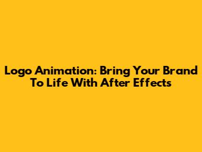 Logo Animation: Bring Your Brand To Life With After Effects
