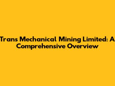 Trans Mechanical Mining Limited: Services, History, And Impact