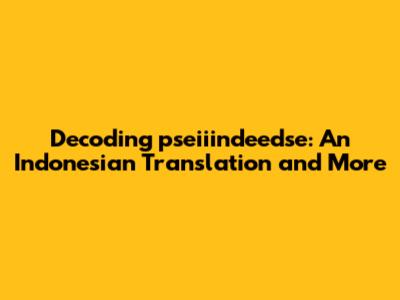 Hey guys! Ever stumbled upon a word or phrase that just completely stumps you? Today, we're diving into one of those head-scratchers: "pseiiindeedse." If you're like most people, you're probably wondering, "What in the world does that even mean, and how do I translate it into Indonesian?" Well, buckle up, because we're about to break it all down.