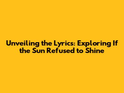 Unveiling The Lyrics: Exploring 'If The Sun Refused To Shine'