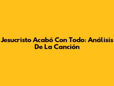 Jesucristo Acabó Con Todo: Análisis De La Canción