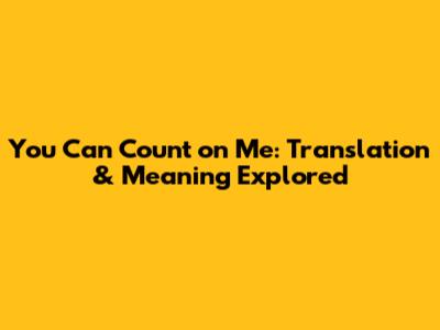 Hey guys! Ever heard the phrase "You can count on me" and wondered how to say it in another language? Or maybe you're just curious about the different nuances and cultural contexts behind this simple yet powerful expression? Well, you've come to the right place! Let's dive deep into the world of translations and explore the meaning behind this phrase that signifies trust, support, and reliability.